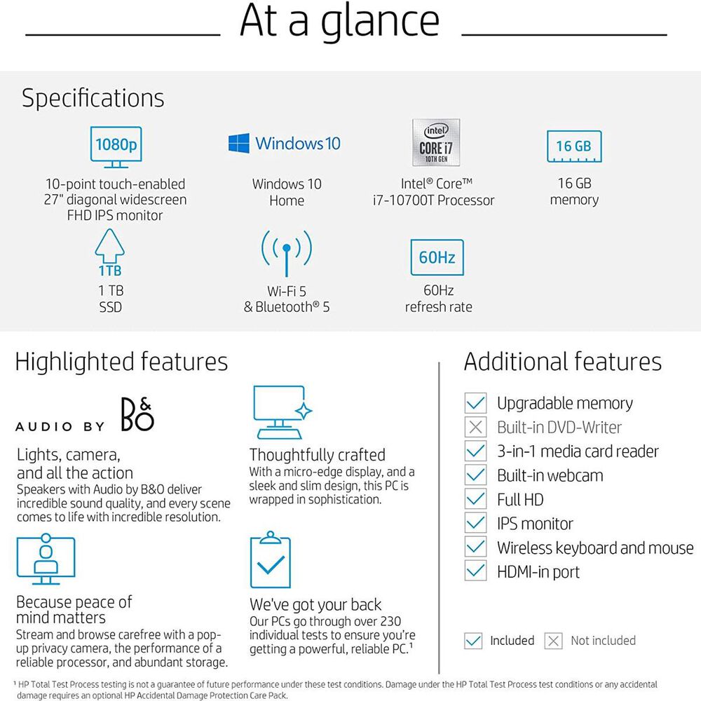 Hp Pavilion All In One Desktop Computer 27 Inch Full Hd Touchscreen Intel Core I7 10700t Processor Intel Uhd Graphics 630 16 Gb Ram 1 Tb Ssd Storage Nebraska Furniture Mart